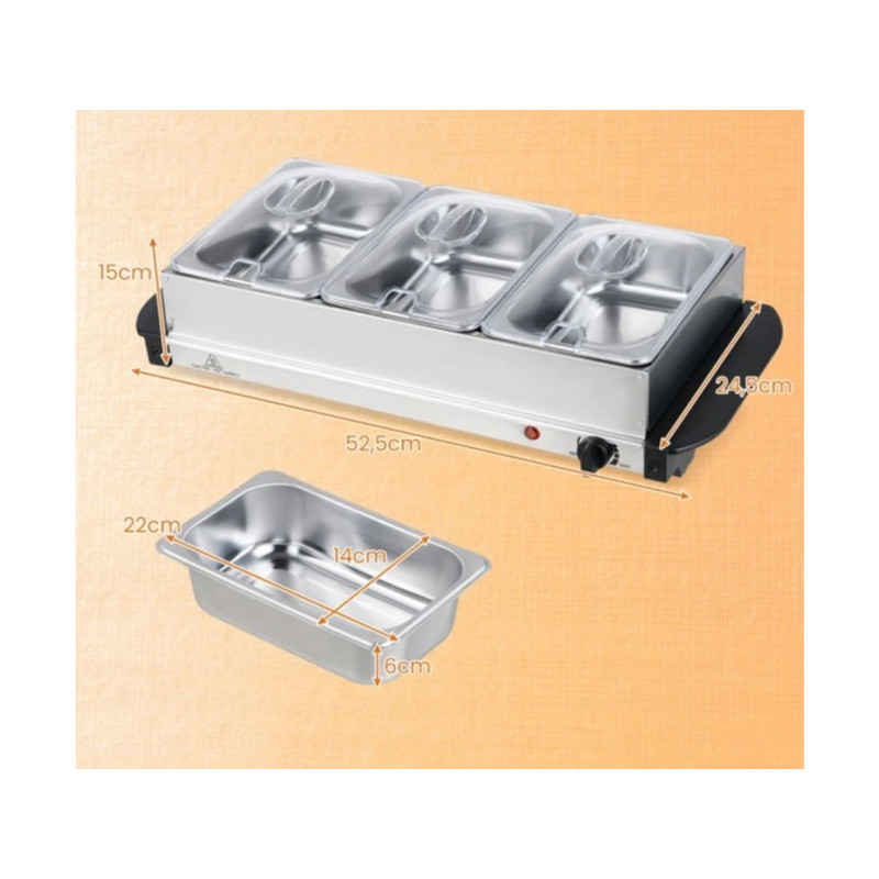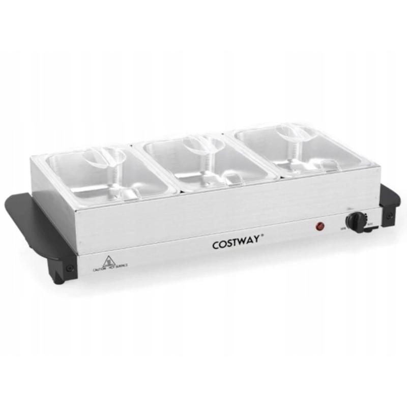 Flexibilní možnosti servírování: Můžete jej použít jako plochou ohřívací misku bez 3 přiložených tácků, abyste udrželi jídlo teplé pomocí vlastních příborů.