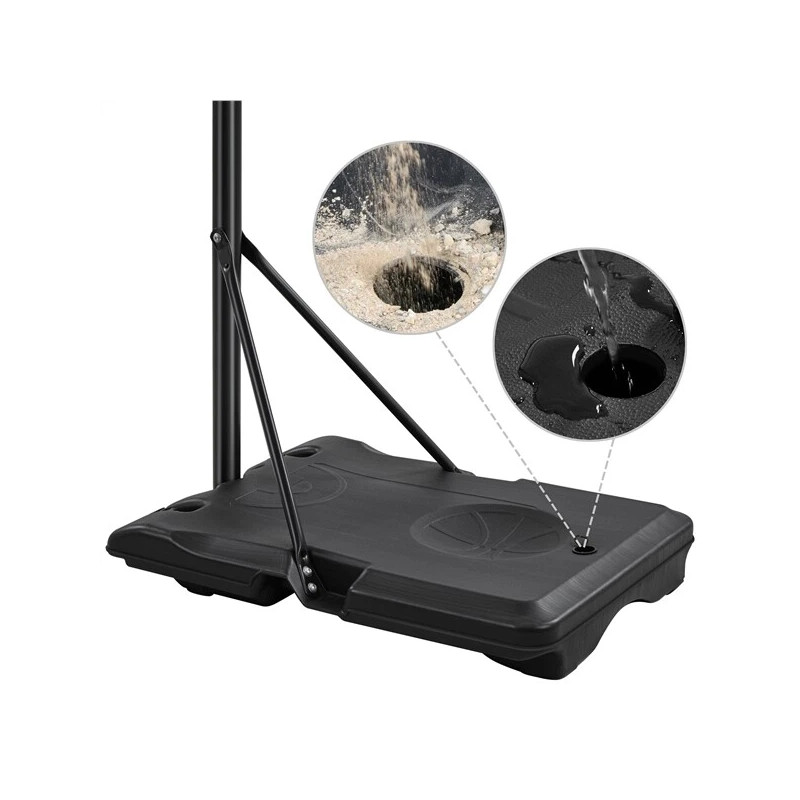 S rozměry 75,5 cm (délka) × 56,5 cm (šířka) × 12 cm (výška) pojme tento podstavec 31 kg vody. Podstavec můžete také naplnit pískem a získat tak stabilní stojan na basketbalový koš.