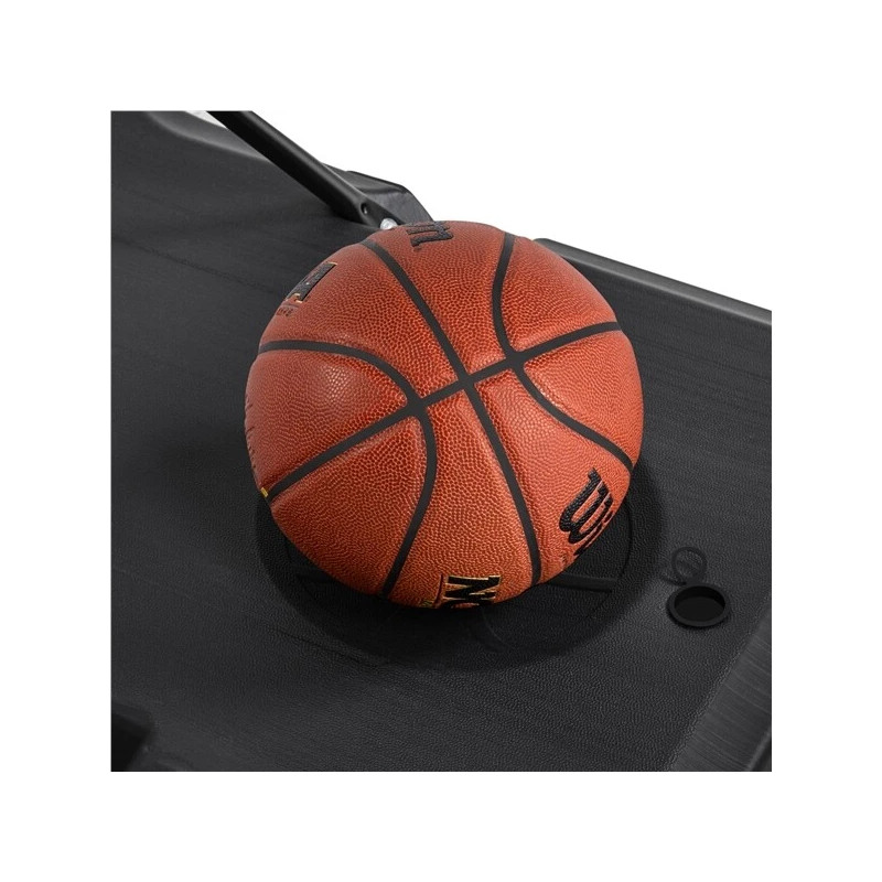 Tento basketbalový stojan má ve spodní části výklenek pro uložení basketbalového míče. Praktický design zabraňuje tomu, aby míč při nepoužívání odvaloval.