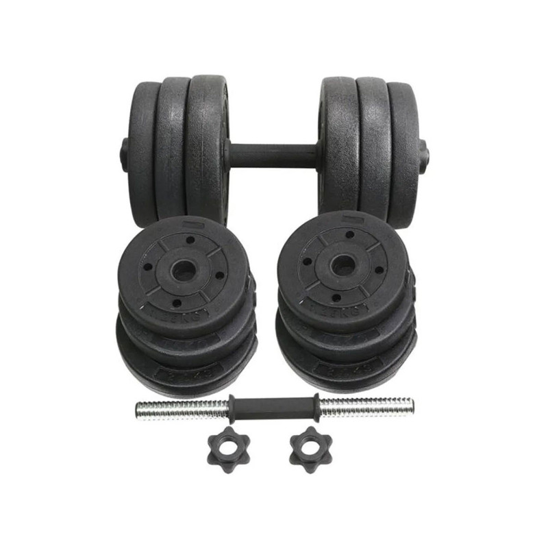 Tato sada činek se skládá z betonových závaží a pochromované činkové tyče. Dodává se se zátěžovými deskami v různých velikostech, takže si můžete přizpůsobit požadovanou váhu činky. Tato sada zátěžových talířů obsahuje 2 páry otočných zámků a protiskluzovou rukojeť, které vám zajistí bezpečný a spolehlivý trénink.