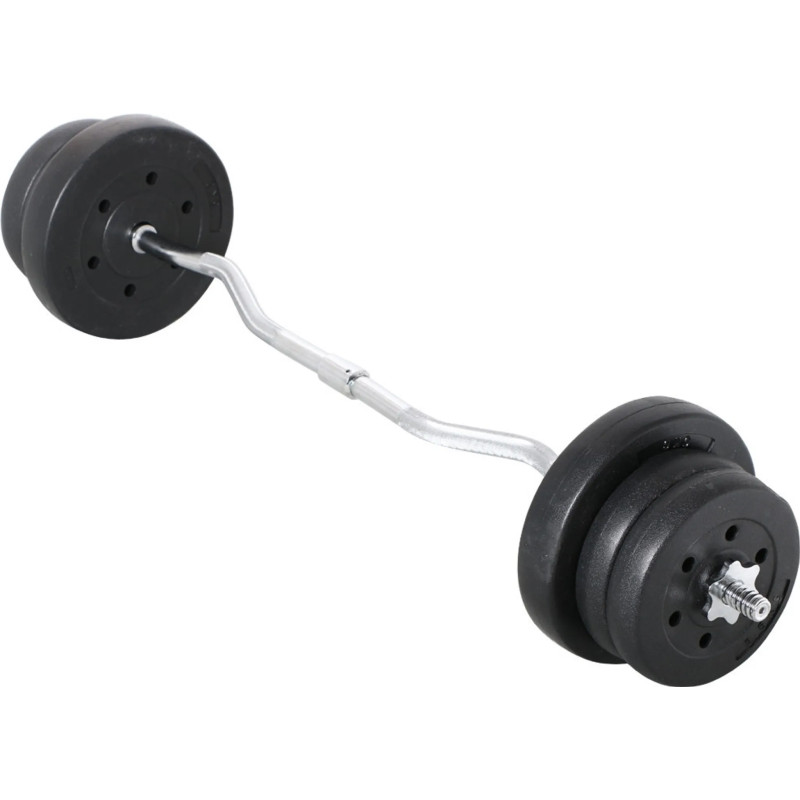 Desky jsou vyrobeny z masivního betonu a tyč na bicepsy je vyrobena z odolného kovu s chromovanou povrchovou úpravou. Vroubkované části zabraňují náhodnému uvolnění v důsledku pocení. Hvězdicové objímky zajišťují bezpečné použití. Tato sada je vhodná pro silový trénink, jako jsou bicepsové zdvihy, přítahy ve stoje, francouzský press, skullscrish a podobně.