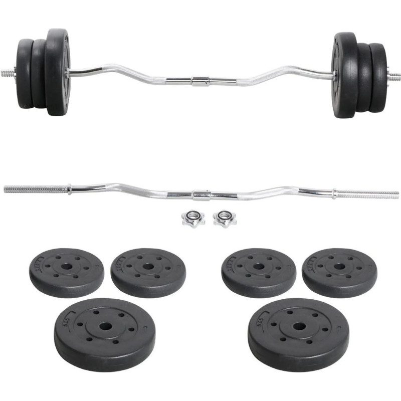 Činka se závažím – Obsahuje 1 EZ tyč, 4 kotouče o hmotnosti 2,5 kg, 2 kotouče o hmotnosti 5 kg a 2 hvězdicové objímky.