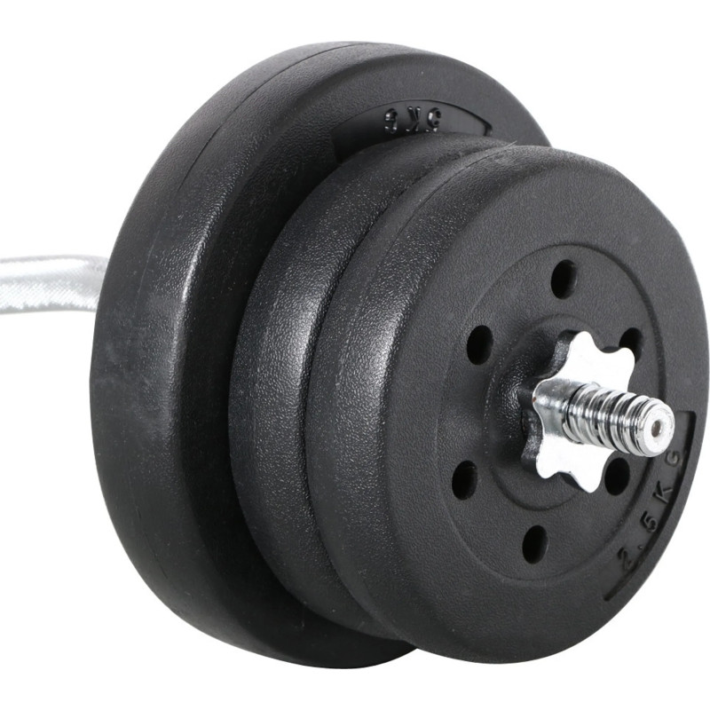 Tato sada činek se skládá z betonových závaží a pochromované činkové tyče. Dodává se se zátěžovými deskami v různých velikostech, takže si můžete přizpůsobit požadovanou váhu činky. Tato sada zátěžových talířů obsahuje 2 páry otočných zámků a protiskluzovou rukojeť, které vám zajistí bezpečný a spolehlivý trénink.