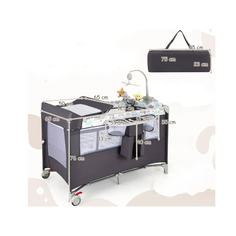 Díky multifunkčnímu designu může tato postýlka sloužit jako stolek pro výměnu plen, místo na spaní a centrum aktivit. Područku lze nastavit ve 4 výškách v závislosti na výšce postele. Vyrobeny z vysoce kvalitní trubky se 7bodovou podporou, mají stabilní konstrukci.