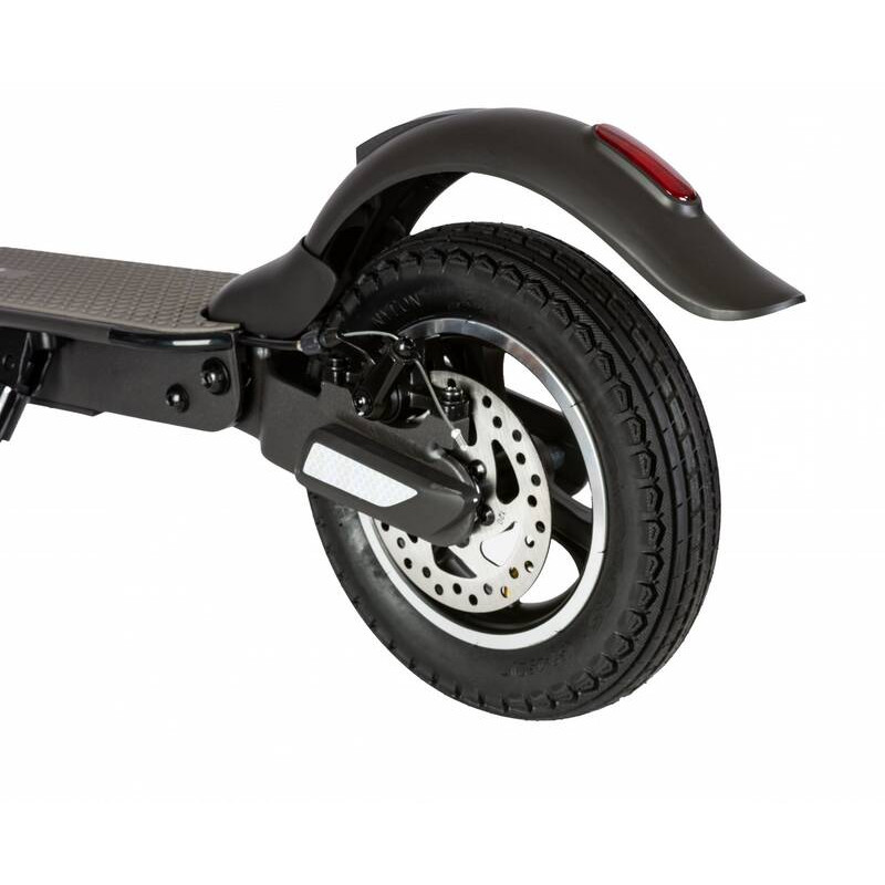 Plná kola s anti defekt úpravou mají průměr 10". Zadní kolo je navíc odpružené, takže si užijete pohodlnou jízdu i na nerovném terénu, polní cestě či dlažebních kostkách. Zařízení má nosnost až 100 kg, takže se na něm mohou bez obav vozit i dospělí.