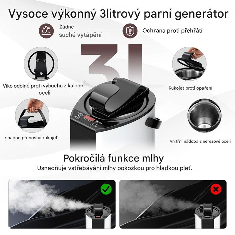3litrový parní generátor a funkce mlžení: Do vnitřní nádoby parního generátoru z nerezové oceli můžete dle libosti přidat zázvor, ocet nebo sůl. Saunový stan je navíc vybaven pokročilou funkcí mlžení, která zlepšuje vstřebávání vodní mlhy pokožkou, a tím zlepšuje stav vaší pokožky.