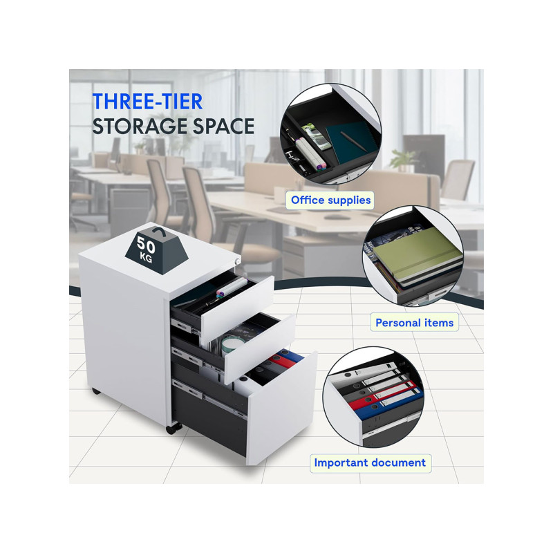 Pokud je vaše domácí kancelář nebo pracovní prostor neustále přeplněný, tento mobilní podstavec se 3 zásuvkami vám pomůže uspořádat složky, knihy a papíry. Obsahuje také odnímatelný organizér na kancelářské potřeby.