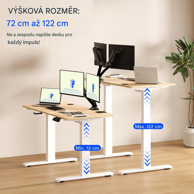 Tento elektrický stůl pro práci ve stoje, vyrobený pro ty, kteří si cení pohodlí, pohybu a moderního designu, je perfektním základem pro zdravější a dynamičtější pracovní styl.