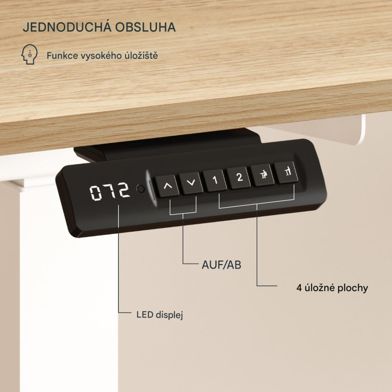 Stůl je vybaven ručním ovladačem se 4 tlačítky a nabízí uživatelsky přívětivé ovládání pro rychlé a pohodlné nastavení.