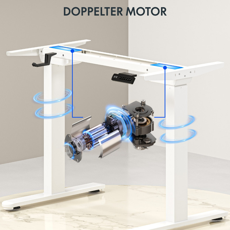 Tento výškově nastavitelný stůl je vybaven systémem dvojitých motorů, který zajišťuje větší stabilitu a účinnost, s maximální rychlostí až 25 mm/s.