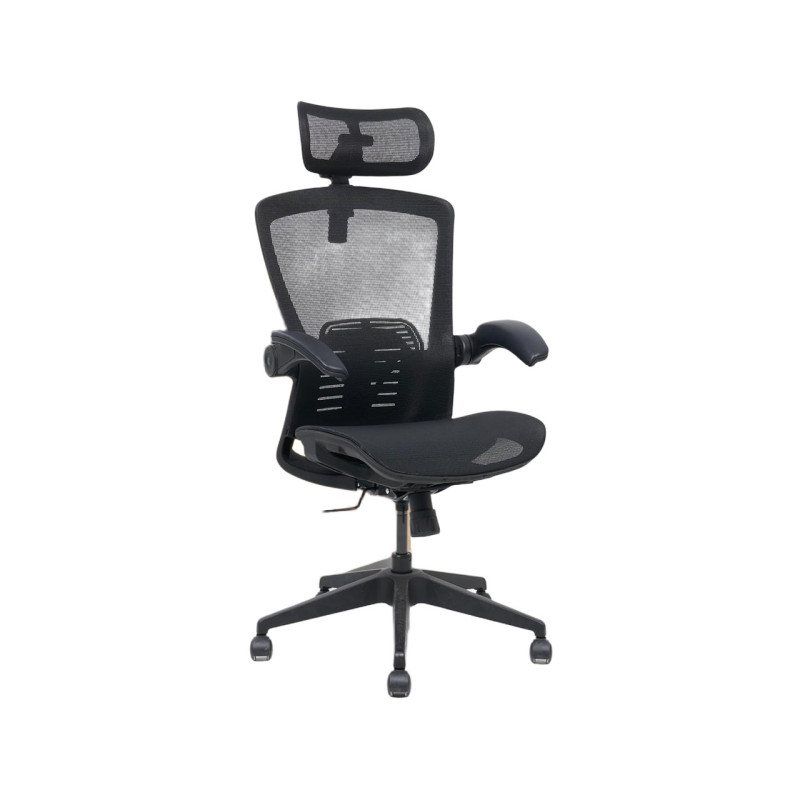 Ergonomická kancelářská židle OC3 PRO s 3D opěrkou hlavy, výškově nastavitelným opěradlem, skládacími PU područkami, prodyšným síťovaným sedákem, nastavením opěradla o 135° a nosností až 150 kg (černá)