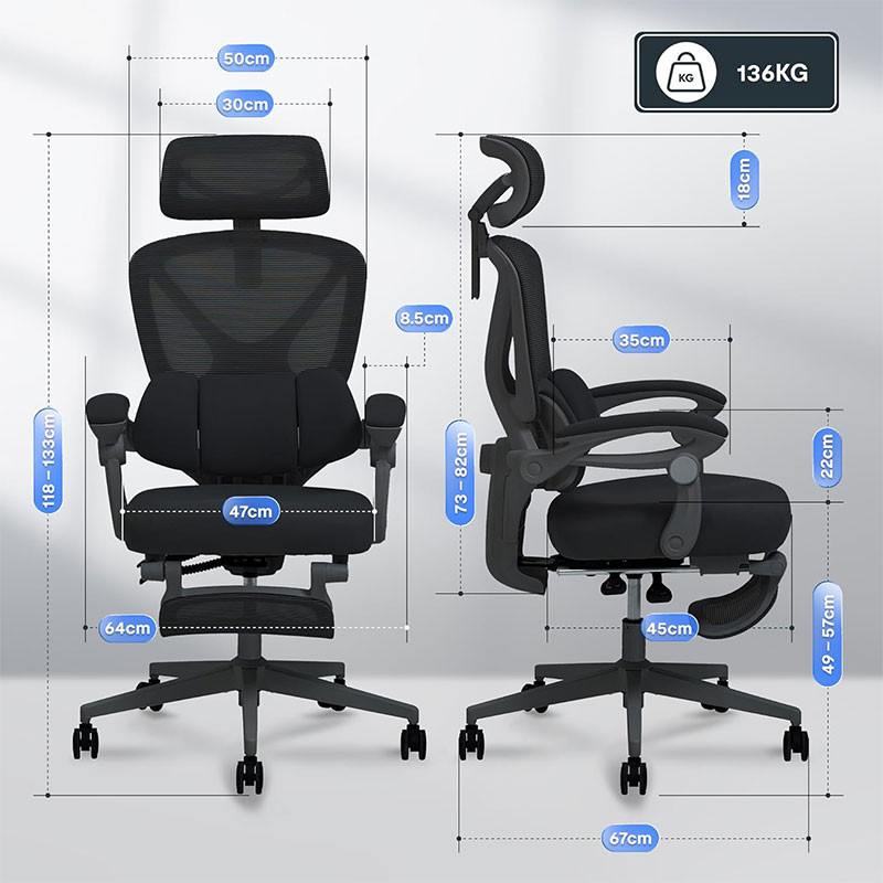 Sklon opěradla 135° pro optimální relaxaci: Opěradlo se nakloní až o 135 stupňů, takže se můžete pohodlně usadit a po dlouhých hodinách práce si dát krátkou pauzu – ideální pro podporu regenerace a zamezení napětí.