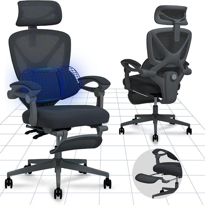 Zonově nastavitelná bederní opěrka - Ergonomická bederní opěrka se nastavuje horizontálně, vertikálně a dokonce i skládací. Poskytuje tak přizpůsobenou oporu pro spodní část zad - bez ohledu na vaši polohu sezení nebo tvar těla.