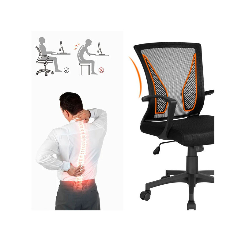 Pohodlná otočná židle je ideálním společníkem pro práci, učení i zábavu. Tato kancelářská židle z prodyšné síťoviny poskytuje příjemné posezení. Výšku sedáku lze nastavit v rozmezí 46,5 cm až 56,5 cm pomocí páky a plynového zdvihu, aby vyhovoval různým tělesným velikostem a výškám stolu. Pomocí páčky pod sedákem můžete také využít funkci houpání a vytvořit si tak relaxační zdřímnutí.