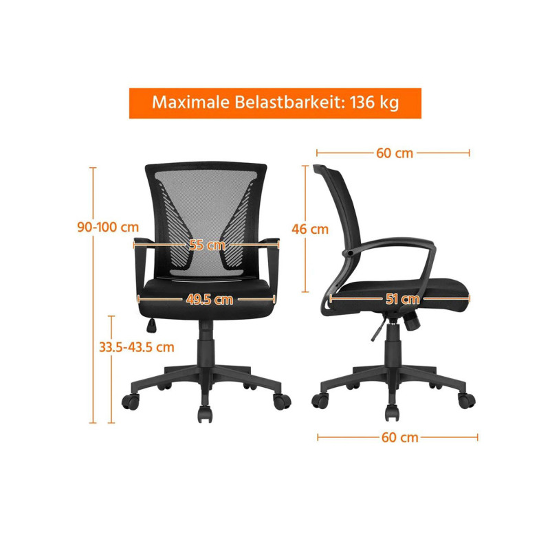 Pohodlná otočná židle je ideálním společníkem pro práci, učení i zábavu. Tato kancelářská židle z prodyšné síťoviny poskytuje příjemné posezení. Výšku sedáku lze nastavit v rozmezí 46,5 cm až 56,5 cm pomocí páky a plynového zdvihu, aby vyhovoval různým tělesným velikostem a výškám stolu. Pomocí páčky pod sedákem můžete také využít funkci houpání a vytvořit si tak relaxační zdřímnutí.