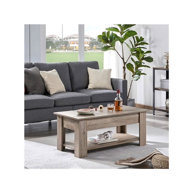 Tento konferenční stolek do obývacího pokoje nabízí dostatek úložného prostoru. Pod horní policí se nachází velký, částečně otevřený prostor. Dále obsahuje dvě zásuvky a dvě přihrádky na uložení drobných předmětů.