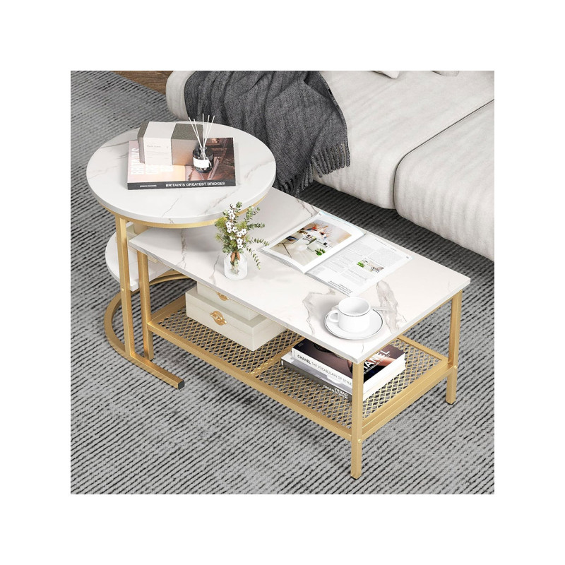 Unikátní moderní design: stylové zasouvací stolky s geometricky tvarovanými deskami z imitace mramorové dýhy se hodí do většiny stylů interiéru. Ať už je tato stohovatelná sada stolků uprostřed umístíte kamkoli, vždy vnese do vašeho obývacího pokoje, ložnice, kanceláře a dalších prostor šmrnc.