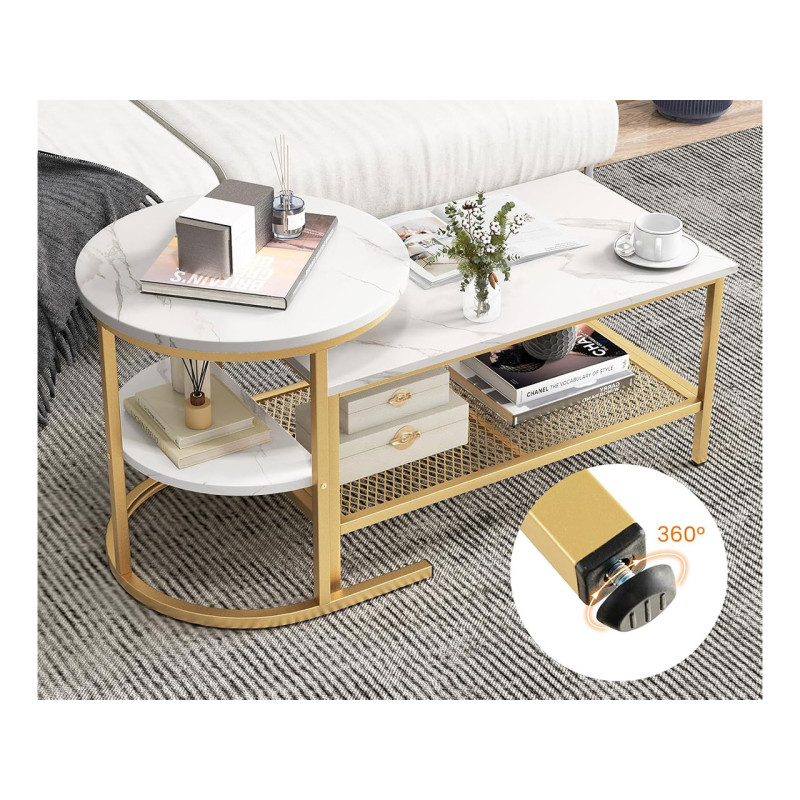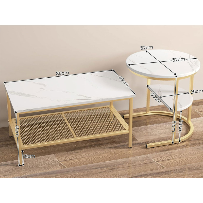 Praktický 2dílný stolek: tato 2dílná sada stolků je vybavena 1 velkým konferenčním stolkem a 1 malým koncovým stolkem a umožňuje flexibilní uspořádání. Můžete je umístit jednotlivě, společně nebo zasunout spodní stolek pod vyšší stolek.