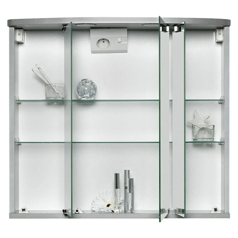 Zrcadlová skříňka Doro LED od Jokey kombinuje inovaci a design. Zrcadlová skříňka zaujme svou LED technologií a flexibilním úložným prostorem. Za třemi zrcadlovými dvířky lze úhledně uspořádat různé kosmetické potřeby, potřeby pro péči o vzhled a léky.