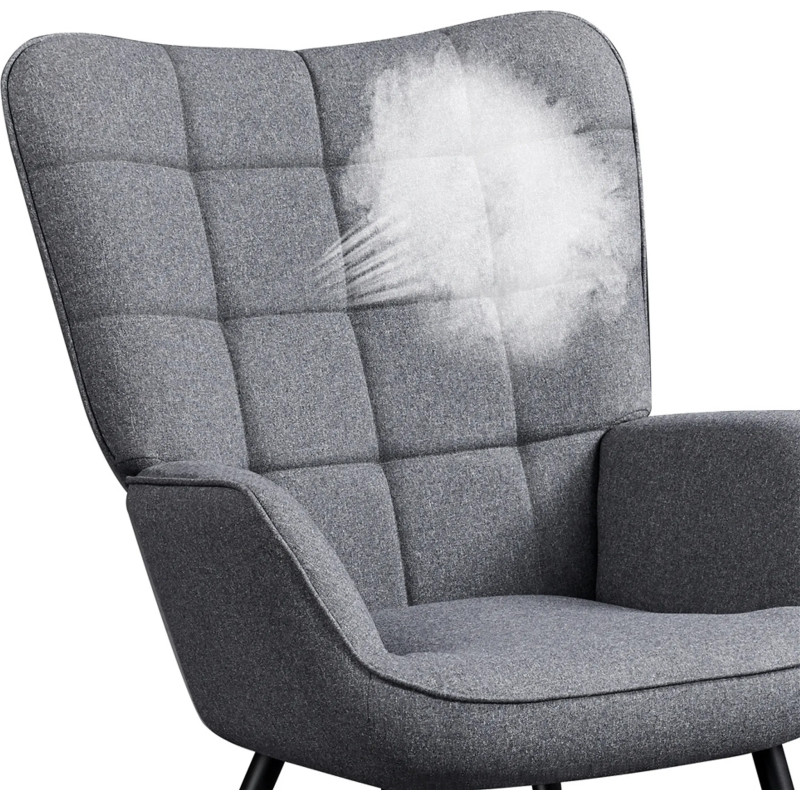 Křeslo je vyrobeno z odolného polyesteru, má robustní kovové nohy a pěnu s vysokou hustotou. Široký sedák a vysoké opěradlo poskytují pohodlné sezení. Toto křeslo je ideální pro čtení románů, sledování filmů, pití kávy, pletení nebo povídání si s přáteli. Díky elegantnímu designu je vhodné do obývacích pokojů, ložnic, na balkony, do pokojů pro hosty, kanceláří, recepcí a dalších prostor.