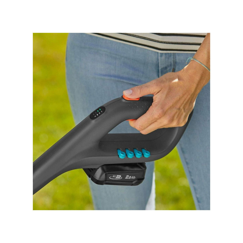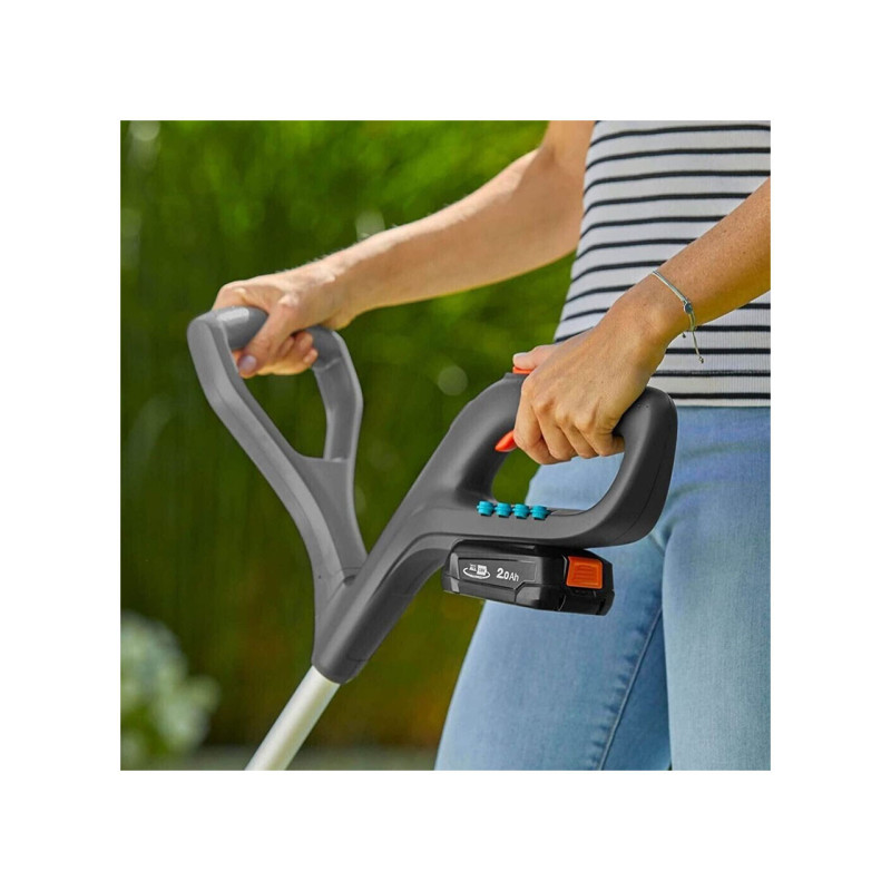 Dlouhé okraje trávníku a těžko přístupná místa na zahradě lze snadno tvarovat s akumulátorovým vyžínačem Gardena EasyCut 23/18V P4A. Individuálně nastavitelná teleskopická rukojeť a extra velká přídavná rukojeť zajišťují uvolněné, vzpřímené držení těla a zároveň usnadňují bezpečné vedení přístroje. Zastřihování na těžko přístupných místech usnadňuje úhlová rukojeť.