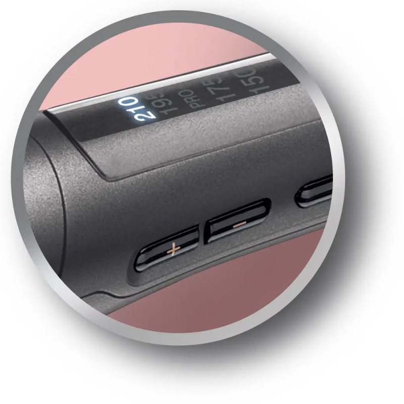 Udělejte si vlny směrem od obličeje jako ze 70. let, směřujte je směrem dolů pro retro styl, nebo vše nakombinujte pro styl rock n` rollu. S kónickou kulmou CI83V6 od značky REMINGTON můžete využít celkem 5 teplotních nastavení podle typu vlasů a délky výdrže účesu, a to až do 210 °C. Nastavení PRO+ vám umožní dosáhnout krásných a dlouhotrvajících vln již při 185 °C, což je vhodnější pro citlivější jemnější vlasy a zdravější styling.