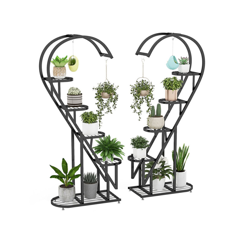Stojan na květiny je vyroben výhradně z kovu s lakovaným povrchem, takže je ultra stabilní a odolný. Pětipatrové police mají mřížkové uspořádání, které zabraňuje hromadění vody a prodlužuje tak životnost.