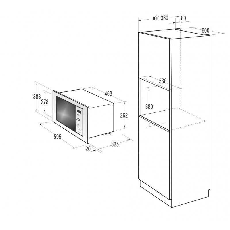 Mikrovlnná trouba - vestavná, příkon 750 W, vnitřní objem 22 l, 4 úrovně výkonu, 750W výkon mikrovlnného ohřevu, disponuje grilem o výkonu 700 W, s 25cm otočným talířem, gril, zapékání Crisp a rychlé rozmrazování, časovač a dětská pojistka, otevírání dvířek doleva, vnější rozměry 38,2 × 59,5 × 32 cm