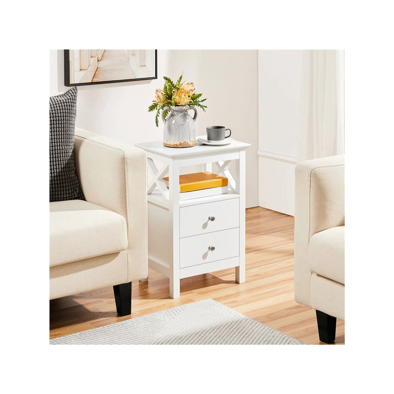Se dvěma praktickými zásuvkami a otevřenou policí vám nabízí všestranný úložný prostor pro všechny vaše drobnosti.