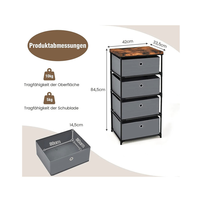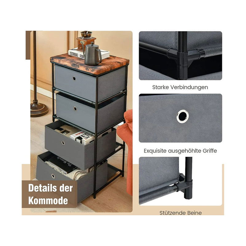 Tato úložná zásuvková skříň výrazně zlepší kvalitu vašeho života a udrží vaše pokoje bez nepořádku. čtyři zásuvky a široká plocha poskytují dostatek úložného prostoru pro oblečení, brýle, lampy, knihy a další předměty.