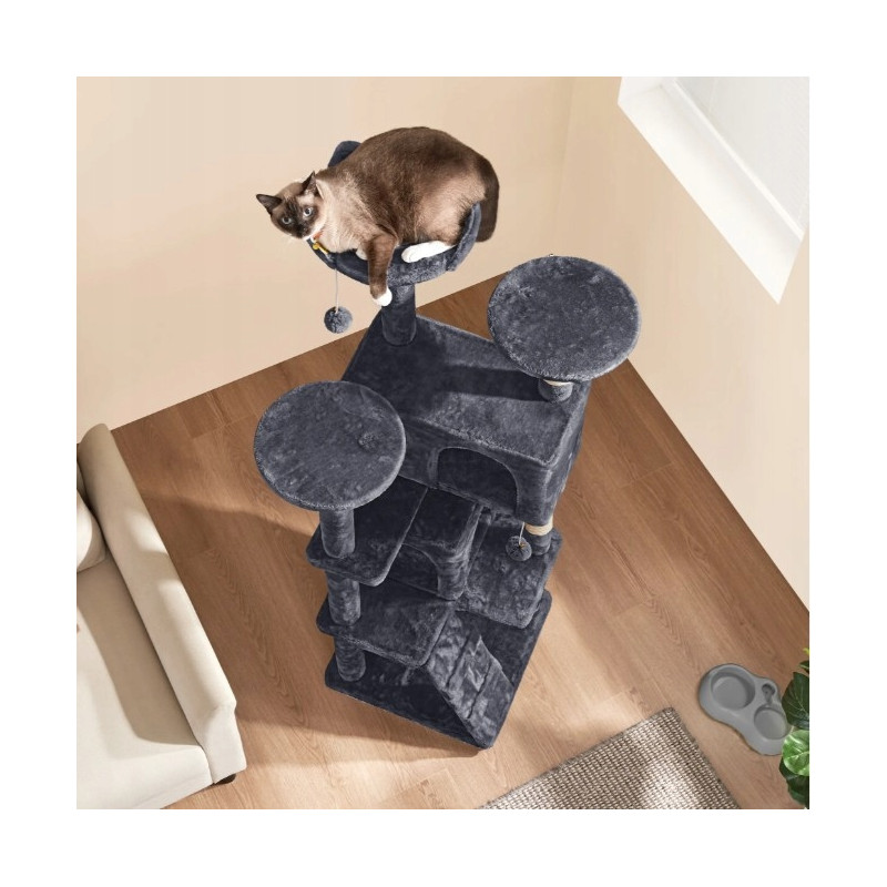 Toto 138,5 cm vysoké škrabadlo pro kočky se 2 kočičími jeskyněmi je optimálním řešením pro rodiny s více koťaty. Díky odolné a vícepatrové konstrukci v ní mohou vaše kočky zůstat celé hodiny a mít bezpečné místo na hraní a odpočinek.