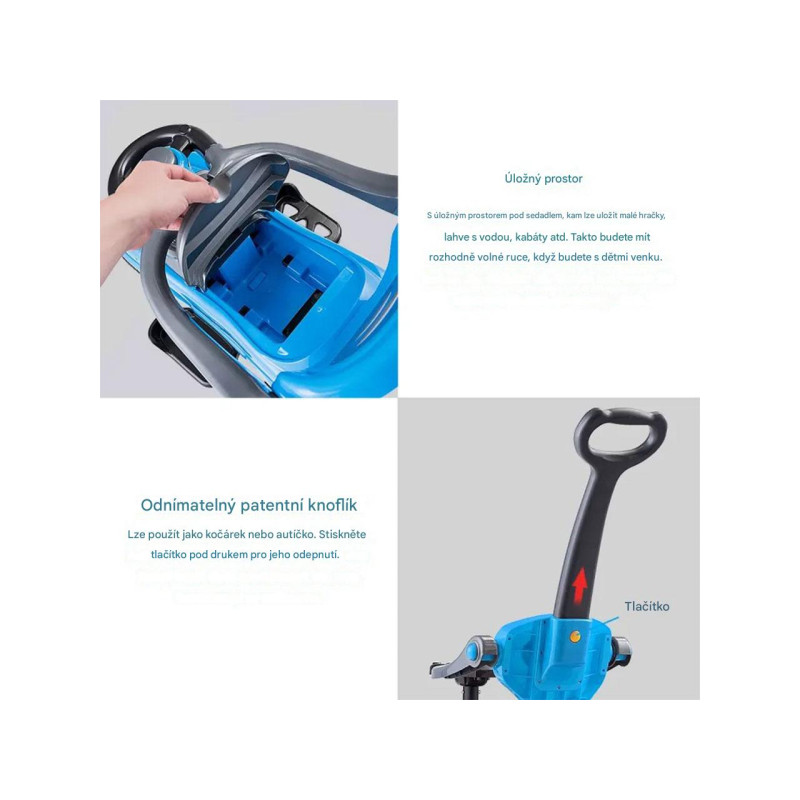 Ilustrativní příklady rozdělení stavů produktůAutíčko s rukojetí TY584778BL s odnímatelnou rukojetí, 3 v 1, modré - B