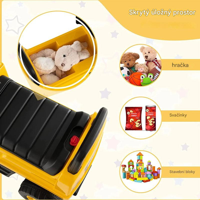 Tento funkční bagr na hraní je určen pro malé děti ve věku 1-3 let. Parádní design a velikost vhodná pro děti přitahují pozornost batolat.