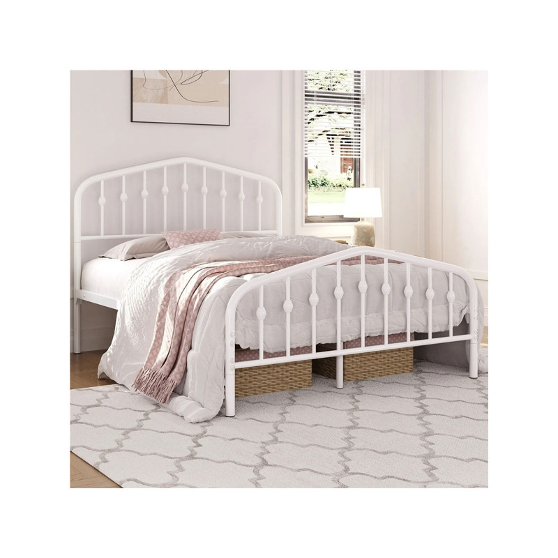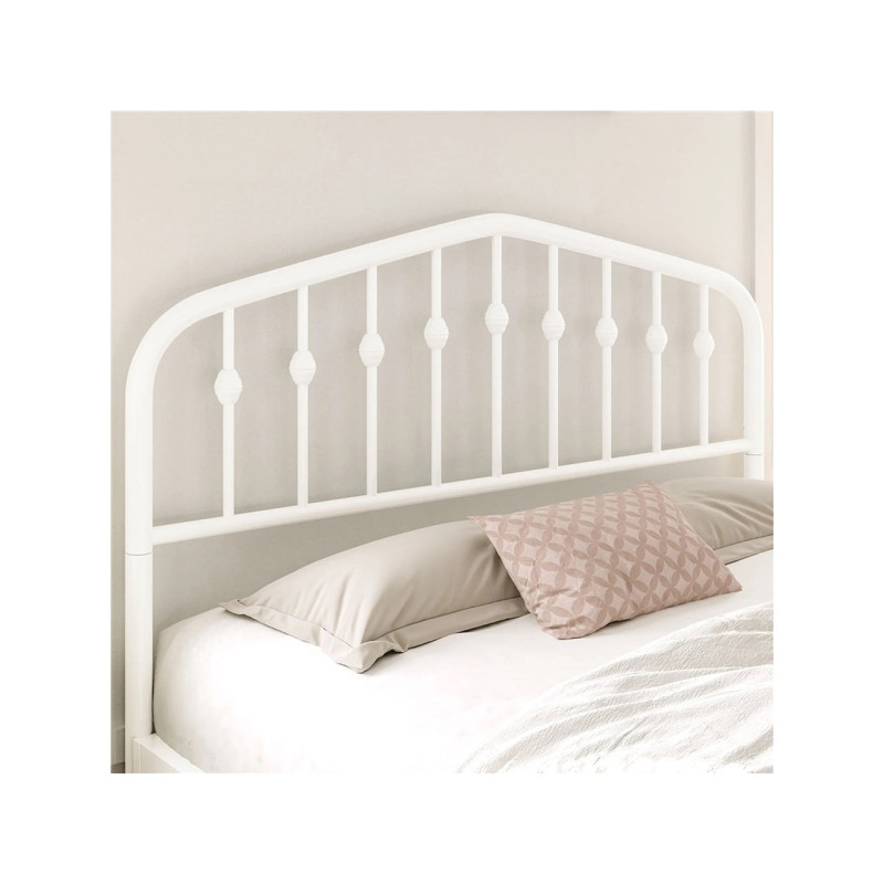 Pokud hledáte praktický rám postele v retro stylu, tato kovová postel je ideální volbou. Čelo postele má zaoblené hrany a kovové tyče s kulovými zakončeními, inspirované tradičními vchodovými dveřmi.