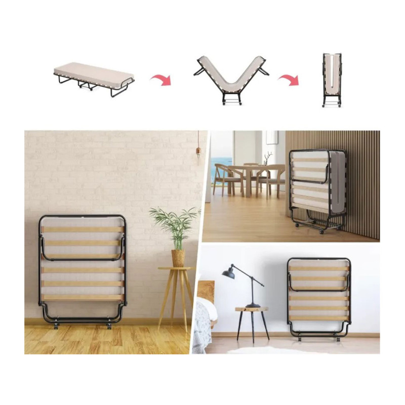Potřebujete jednolůžko pro další návštěvu? Naše skládací postel je pro vás ideální volbou! Naše jednolůžko je vyrobeno z vynikající paměťové pěny a podpůrné pěny s vysokou hustotou, je měkké a pružné a nabízí vám i vašim hostům maximální pohodlí pro kvalitní spánek.