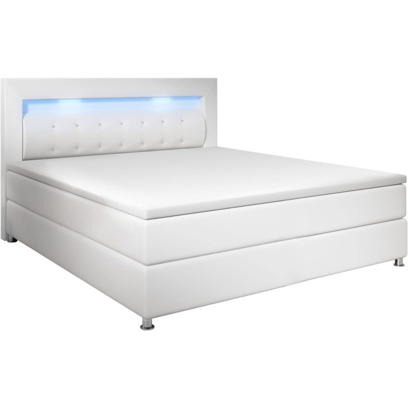 Nadčasový design: Postel s elegantním a decentním vzhledem kůže; ušlechtilý potah z bílé a snadno udržovatelné umělé kůže; zaručeně upoutá pozornost v každé ložnici; elegantní kovové nohy doplňují dojem