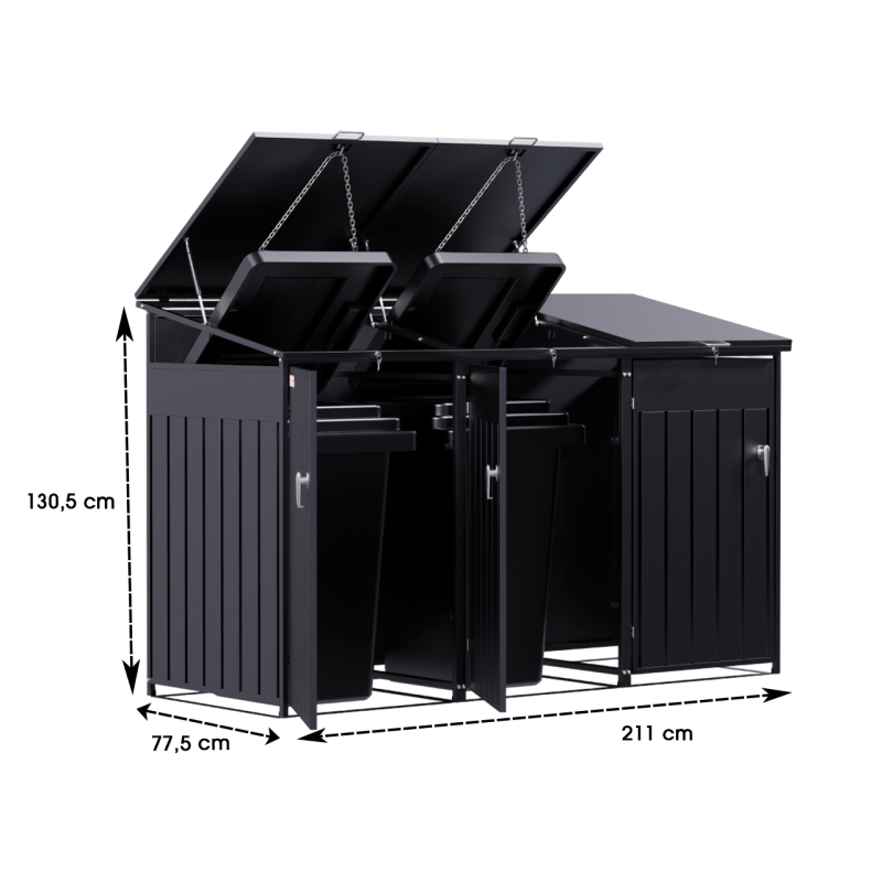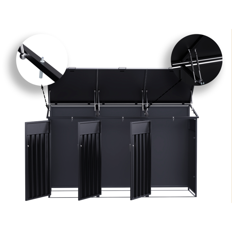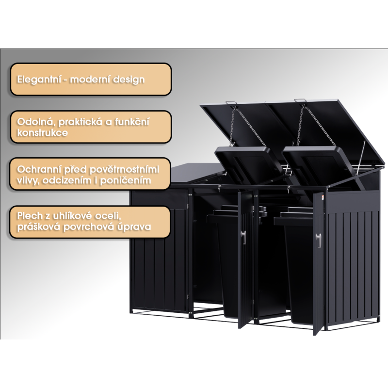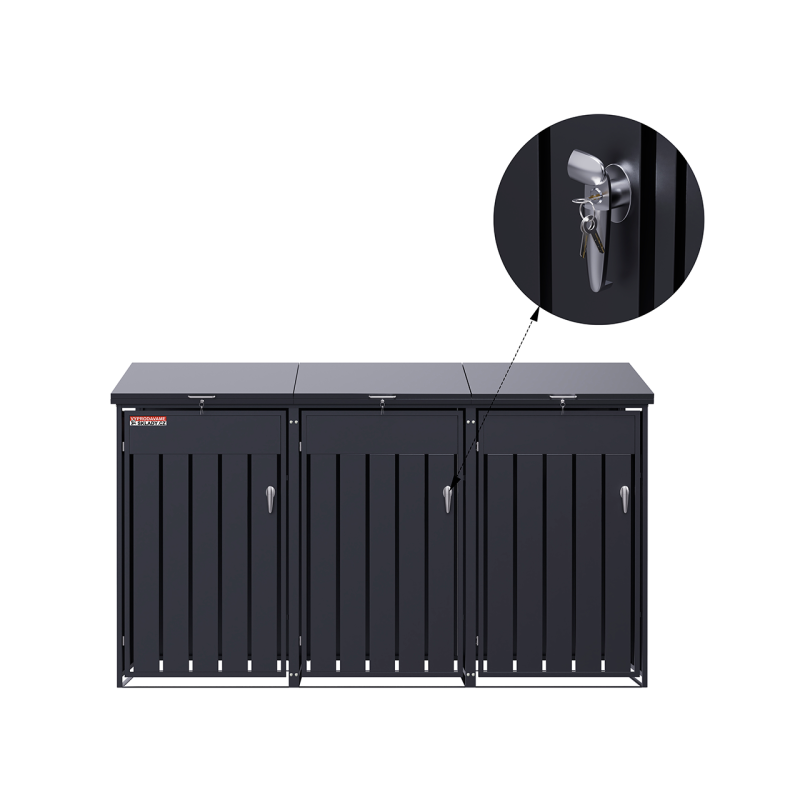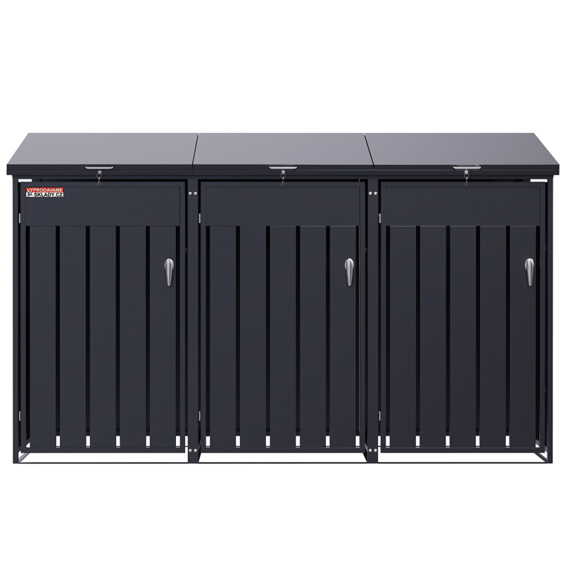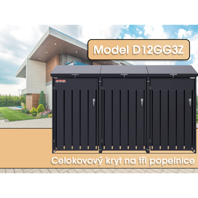Ilustrativní příklady rozdělení stavů produktůPřístřešek na popelnice D12GG3Z, na 3 popelnice s dvěma zámky proti větru a krádeži, antracit - N