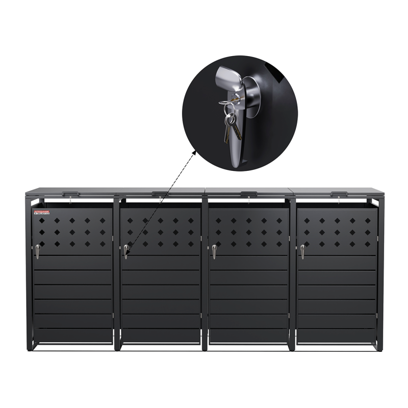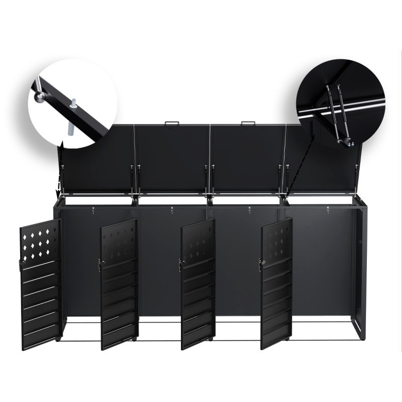 Ilustrativní příklady rozdělení stavů produktůPřístřešek na popelnice D14GG4Z, na 4 popelnice, celokovový kryt, moderní, antracit - N