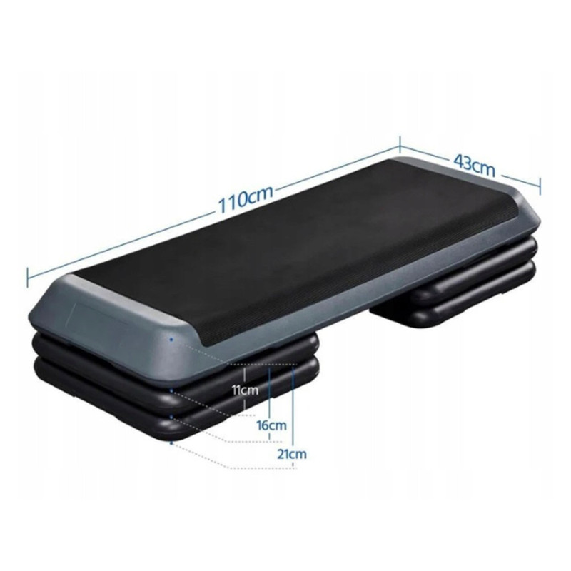 Náš stepper nabízí tři různé výšky (11 cm / 16 cm / 20 cm), takže si výšku plošiny můžete přizpůsobit svým potřebám a osobní úrovni kondice.