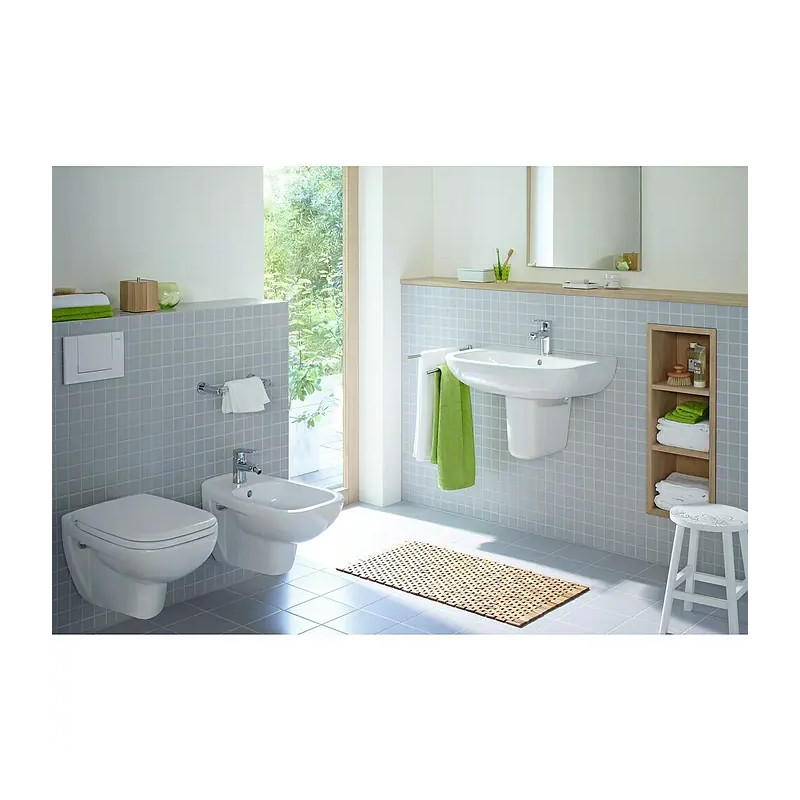 Nástěnné umyvadlo Renova Plan od značky Geberit přináší do koupelny eleganci a styl. Je vyrobeno z kvalitní sanitární keramiky a má v sobě integrovaný přepadový otvor a dodává se v setu s elegantní umyvadlovou baterii od Hansgrohe, sifonem (ø 32 mm), dvěma rohovými ventily s připojením 1/2" × 3/8" a montážní sadou.