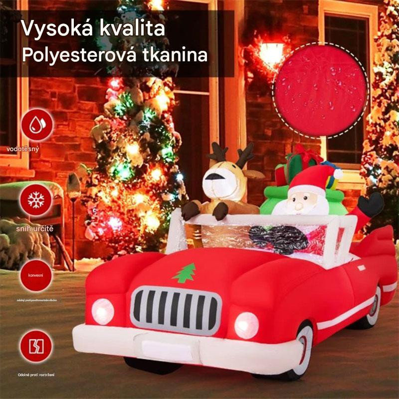 Rozzářte svou zahradu naší barevnou LED vánoční dekorací! Tento jedinečný kousek zobrazuje Santu a jeho soba v červeném autě plném dárků, připravené na cestu plnou sváteční radosti.