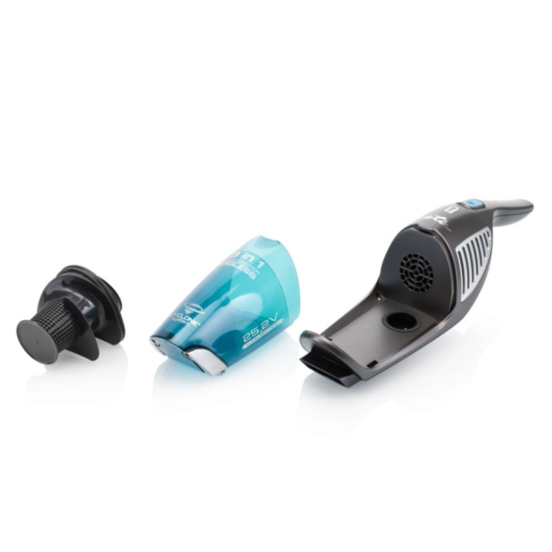 Využití Lithium-iontové technologie akumulátoru (14,4 V) je zárukou dlouhodobě špičkového výkonu, maximální bezpečnosti i krátké doby nabíjení (4 až 5 hodin). Na nabití přitom vysavač dokáže pracovat až 35 minut! Samozřejmě nechybí ani indikace stavu nabití.