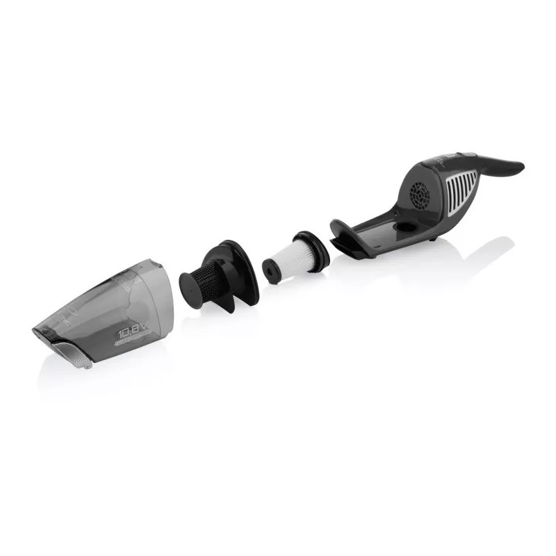 Hyundai VC814 je ruční a tyčový vysavač v jednom! Pro snadné používání má spotřebič ergonomickou rukojeť, která se dá sklopit. Příslušenství zahrnuje štěrbinovou hubici pro vysávání na špatně dostupných místech a kartáček s jemnými štětinkami pro šetrný úklid. Obojí se ukládá do velmi praktického úložného prostoru vysavače. Díky nízké hmotnosti je manipulace s ním velmi jednoduchá a dá se dobře skladovat.