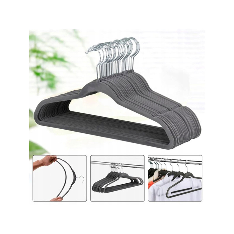 Věšák pojme až 5 kg. Sametové povlékání na ramínkách zvyšuje tření mezi ramínkem a oblečením a zabraňuje klouzání oděvů.