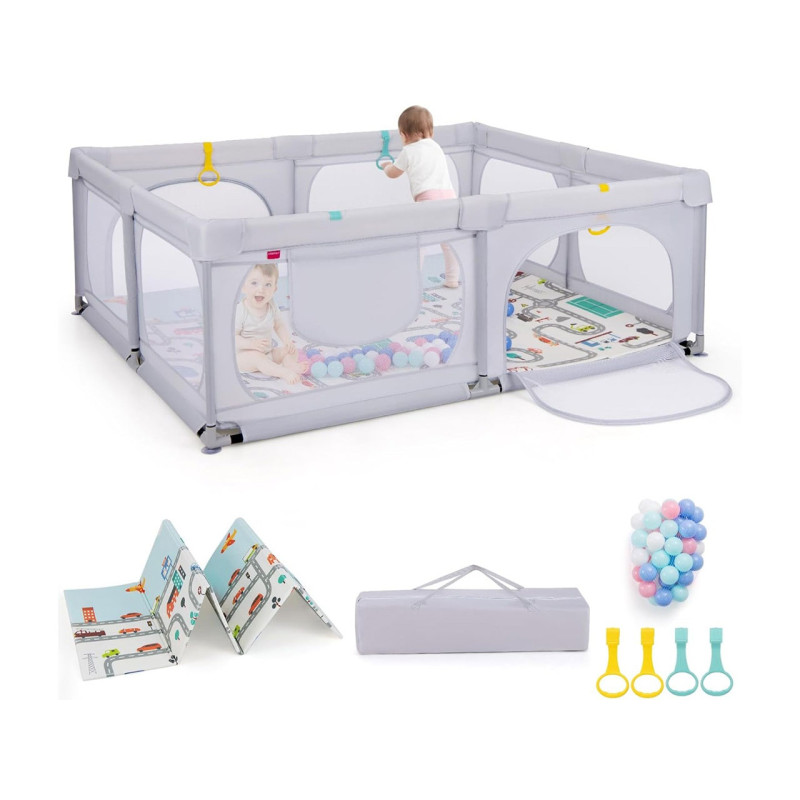 Dětská ohrádka s matrací UY10097GR, světle šedá - B