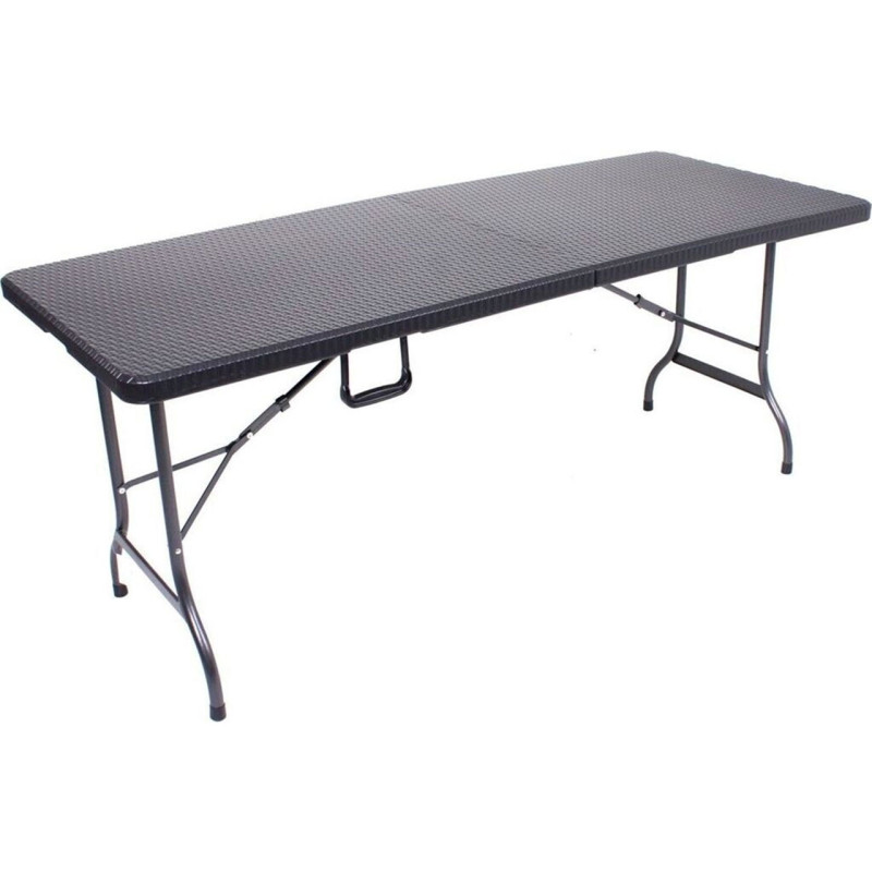 Skládací zahradní stůl s ratanovým vzhledem je všestranný a ideální kus nábytku pro spontánní příležitosti, kdy potřebujete rychle ubytovat další hosty a poskytnout úložný prostor pro jídlo a pití.