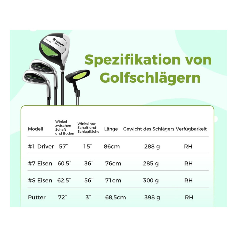Kompletní sada golfových holí Junior SP38122GN, s pláštěnkou pro praváky, zelené - A