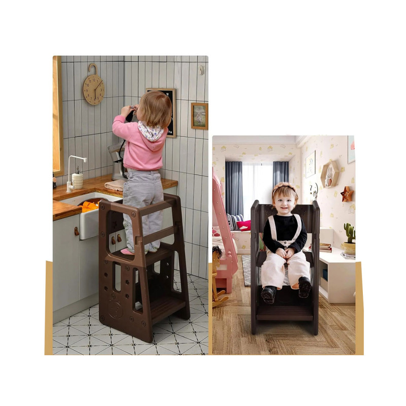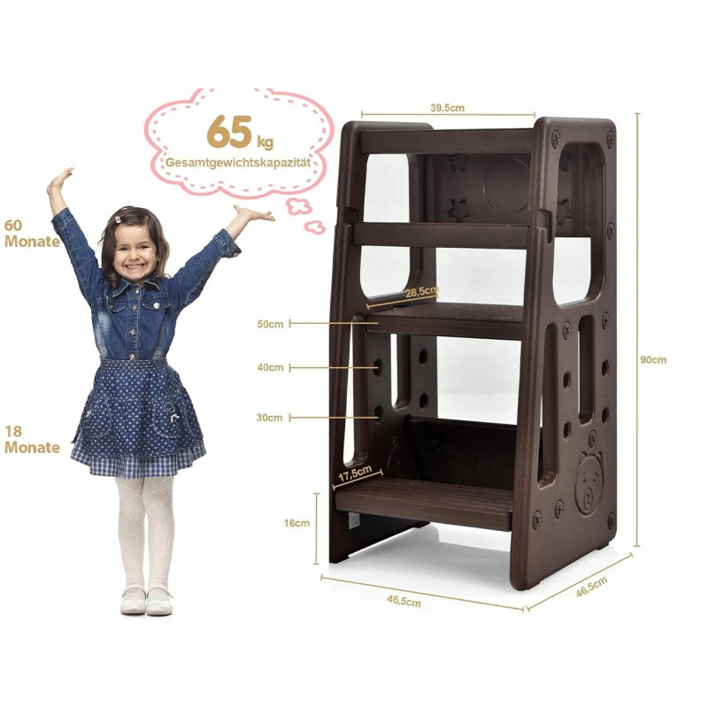 2stupňová věž na učení HY10011CF se 3 nastavitelnými výškami, hnědá - A
