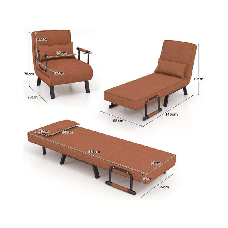 Rozkládací křeslo HV10417CF, hnědé - A