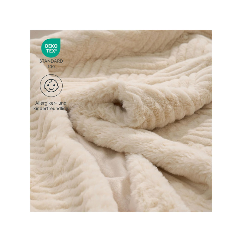Deka Happy je vyrobena z nadýchaného měkkého materiálu a vytváří útulné a luxusní prostředí bydlení a zvyšuje pocit bezpečí. Happy přesvědčí svou plyšovou kvalitou v kožešinovém vzhledu a je ideální přikrývkou na gauč nebo křeslo. Je vhodný i jako doplněk do prostoru na spaní.